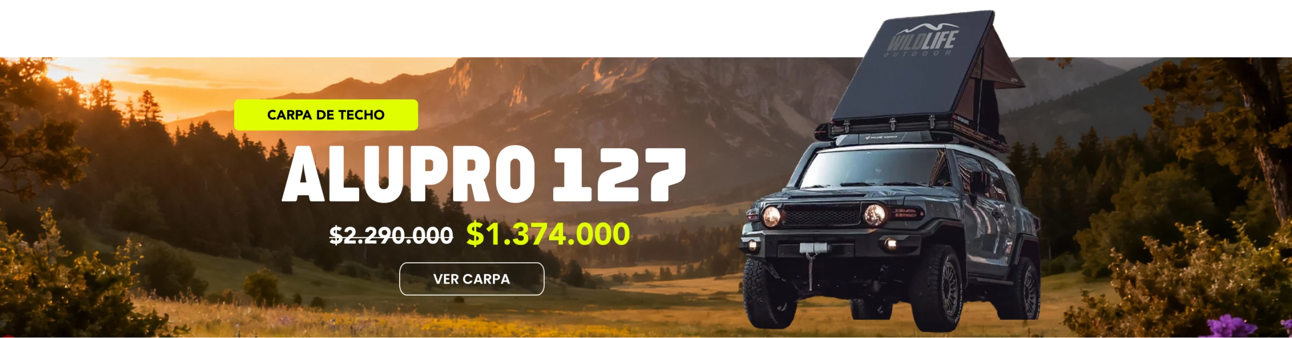 APROVECHA HASTA EN 12 CUOTAS SIN INTERÉSVER MÁS Productos DestacadosCARPA DE TECHO HARD SHELL$ 1.358.500$ 2.090.000Cooler Wild Freeze Max PRO 50L$ 274.995$ 549.990CARPA RIDGE 6.3 AIR$ 448.500$ 690.000TOLDO LATERAL PRO 270 GRADOS$ 397.493$ 529.990 CARRITO PLEGABLE 60L CAMPING$ 19.995$ 39.990SILLA CAFE PLEGABLE PLAYERA PRO$ 16.495$ 29.990MESA ALUMINIO TIPO ESTANTE PARA COCINAR 125X51X81$ 62.993$ 89.990TOLDO / CARPA MOSQUITERO HUB 600$ 279.993$ 399.990