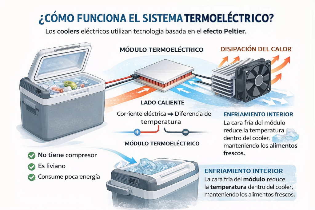 Los coolers eléctricos para camping y viajes utilizan tecnología termoeléctrica basada en el efecto Peltier.
