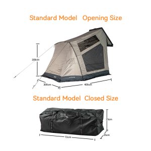 Agrega confort y funcionalidad a tu carpa de techo con el Anexo Vestidor AC127, un espacio adicional para cambiarte o guardar tus pertenencias. Fabricado en Oxford 420D con revestimiento PU, es impermeable y resistente al desgaste, ideal para todo tipo de clima. Su ventana TPU panorámica y mosquiteras antiinsectos ofrecen ventilación y vista, mientras su cremallera reforzada permite un montaje rápido y seguro. Perfecto para ampliar el confort de tu carpa Wildlife Outdoor.