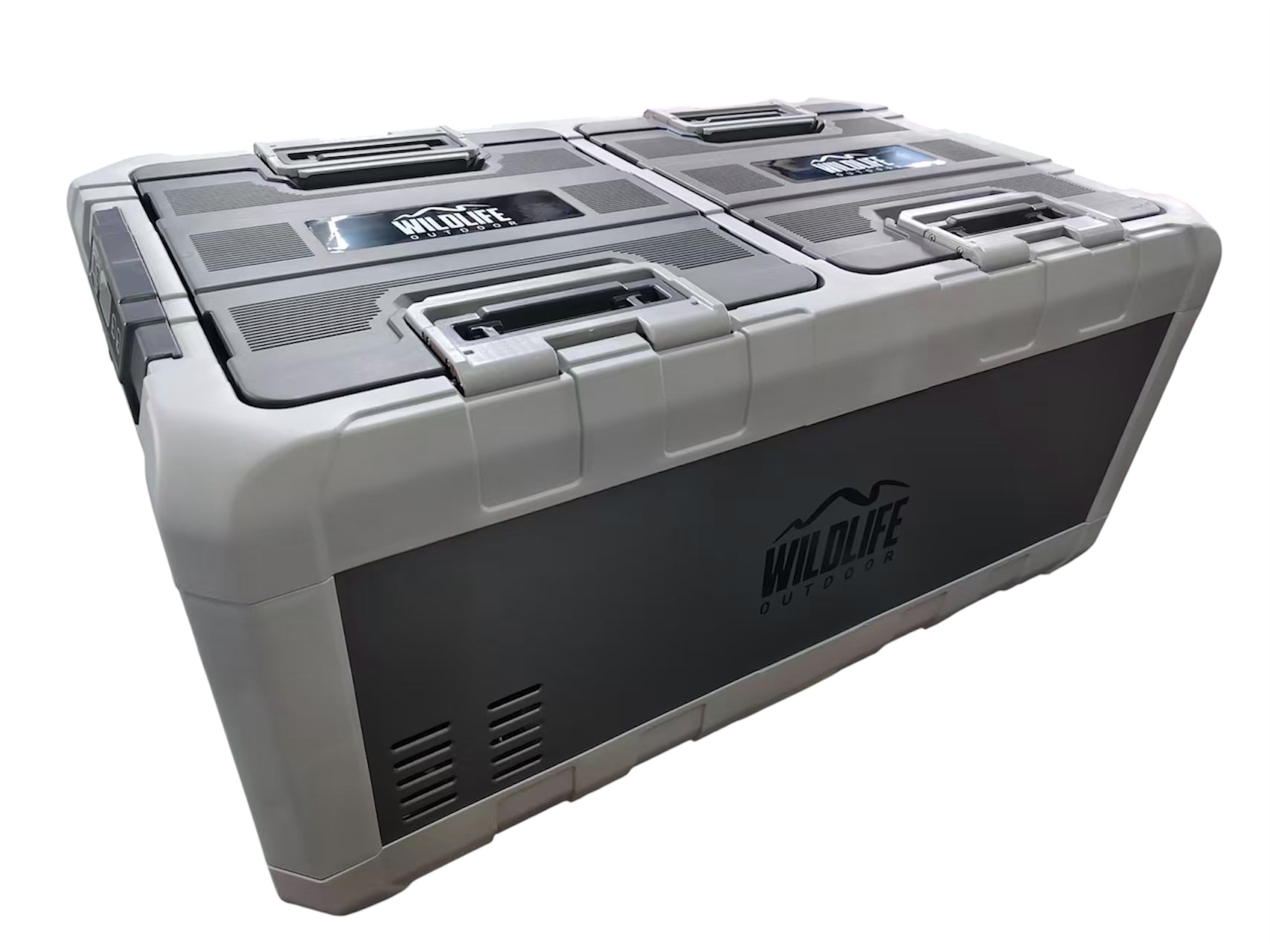 El freezer portátil 80 litros bizona es el más grande de la línea Wildlife Outdoor. Con dos compartimentos (34L + 46L), permite ajustar cada espacio de forma independiente entre -18°C y +10°C. Ideal para aventureros, familias y expediciones largas.
