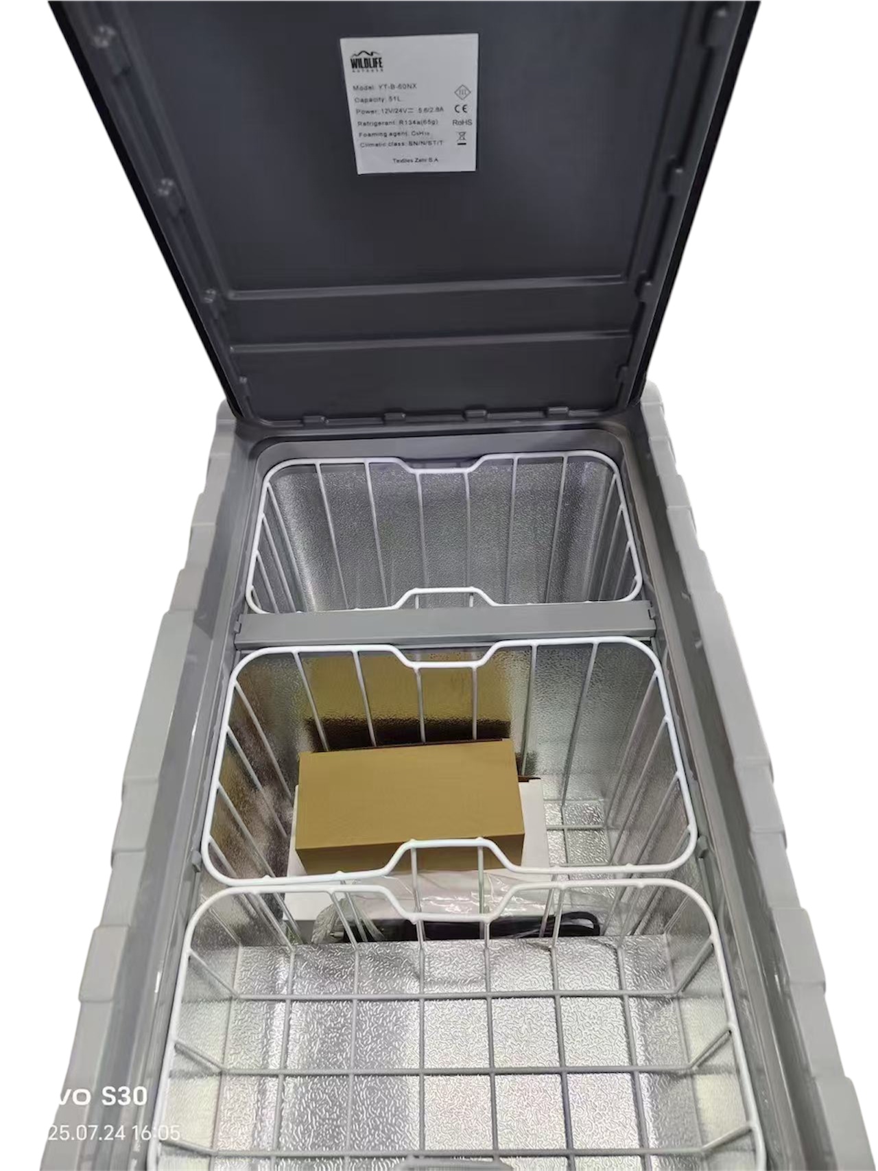 El freezer portátil 50 litros bizona ofrece la máxima versatilidad gracias a sus dos compartimentos independientes. Cada zona se regula de forma separada desde -18°C hasta +10°C, lo que permite usarlo como freezer y refrigerador al mismo tiempo.